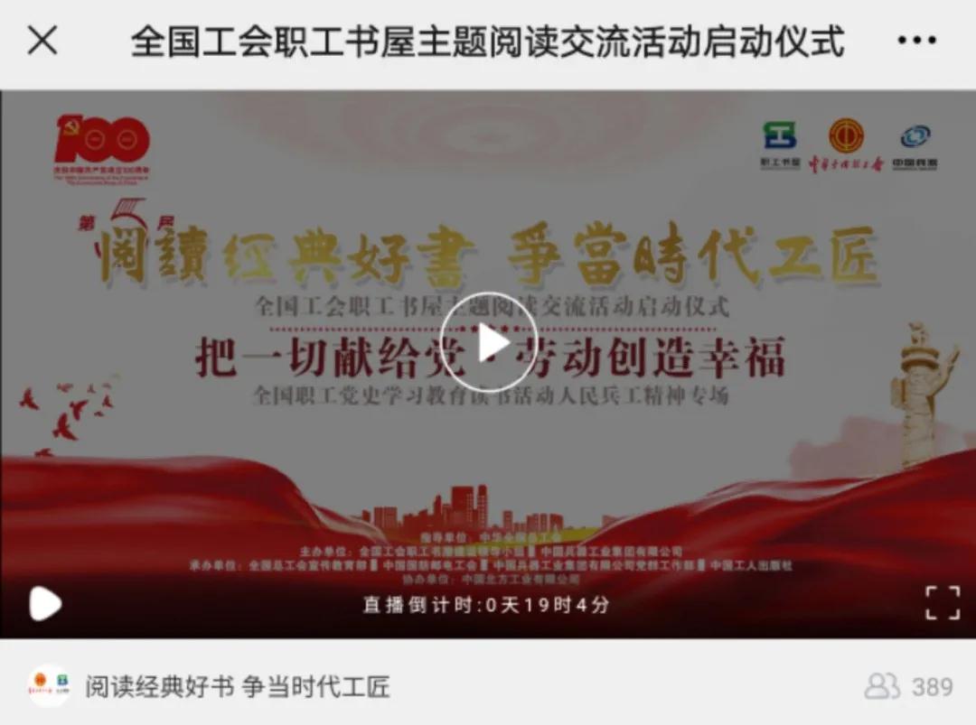 又到一年世界讀書日,激蕩在全國(guó)職工朋友心中的“閱讀經(jīng)典好書 爭(zhēng)當(dāng)時(shí)代工匠”又一次在神州大地叫響。今年,“把一切獻(xiàn)給黨 勞動(dòng)創(chuàng)造幸?!?/strong>成為了閃亮的主題,在億萬職工中掀起心潮。 今天(4月23日)下午 15:00,第五屆“閱讀經(jīng)典好書 爭(zhēng)當(dāng)時(shí)代工匠”全國(guó)工會(huì)職工書屋主題閱讀交流活動(dòng)啟動(dòng)儀式暨“把一切獻(xiàn)給黨·勞動(dòng)創(chuàng)造幸福”全國(guó)職工黨史學(xué)習(xí)教育讀書活動(dòng)人民兵工精神專場(chǎng)隆重開啟! 多項(xiàng)閱讀計(jì)劃同場(chǎng)發(fā)布、多本經(jīng)典好書現(xiàn)場(chǎng)推薦、多位職工誦讀演繹紅色經(jīng)典、勞模代表進(jìn)行閱讀分享和倡議,讓我們共同在閱讀中感悟紅色經(jīng)典,在活動(dòng)中傳承精神力量。 這一年一度的全國(guó)職工閱讀盛典,你還在等什么! 看!在建黨百年的歷史節(jié)點(diǎn),職工現(xiàn)場(chǎng)誦讀紅色經(jīng)典《把一切獻(xiàn)給黨》,傳承以吳運(yùn)鐸為代表的人民兵工精神,感悟經(jīng)典的魅力和信仰的力量。 聽!來自兵器工業(yè)集團(tuán)的全國(guó)勞模代表在現(xiàn)場(chǎng),向廣大職工朋友發(fā)出閱讀倡議。分享在黨的領(lǐng)導(dǎo)下,大國(guó)重器由跟仿跟研到世界領(lǐng)先的蛻變。 來!聚焦現(xiàn)場(chǎng),正式啟動(dòng)第五屆“閱讀經(jīng)典好書 爭(zhēng)當(dāng)時(shí)代工匠”全國(guó)工會(huì)職工書屋主題閱讀交流活動(dòng),同時(shí)點(diǎn)亮專屬人民兵工精神的火炬,讓閱讀熱情傾力綻放。 40余家省級(jí)工會(huì)新媒體 100余家市級(jí)工會(huì)新媒體 200余家知名企業(yè)工會(huì)新媒體 同步直播 精彩即將上演 直播在哪看? STEP1 關(guān)注全總職工書屋微信號(hào) 點(diǎn)擊下方菜單欄-活動(dòng)專區(qū) 觀看直播啦 還可以同步觀看圖片直播 記錄下每個(gè)精彩時(shí)刻 |