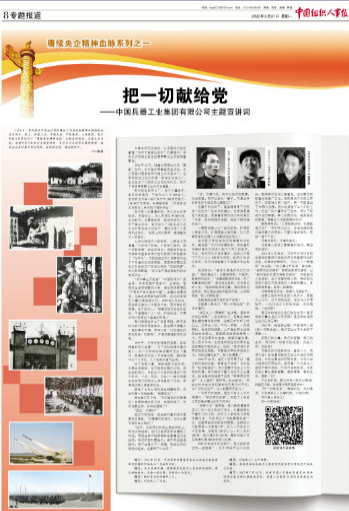 1月6日,貫徹落實(shí)中央企業(yè)黨的建設(shè)工作座談會(huì)精神專題推進(jìn)會(huì)在京召開(kāi)。會(huì)上,中國(guó)兵器工業(yè)集團(tuán)有限公司等5家單位作了“賡續(xù)央企精神血脈”主題宣講報(bào)告。3月21日,《中國(guó)組織人事報(bào)》刊發(fā)賡續(xù)央企精神血脈系列之一——《把一切獻(xiàn)給黨——中國(guó)兵器工業(yè)集團(tuán)有限公司主題宣講詞》。