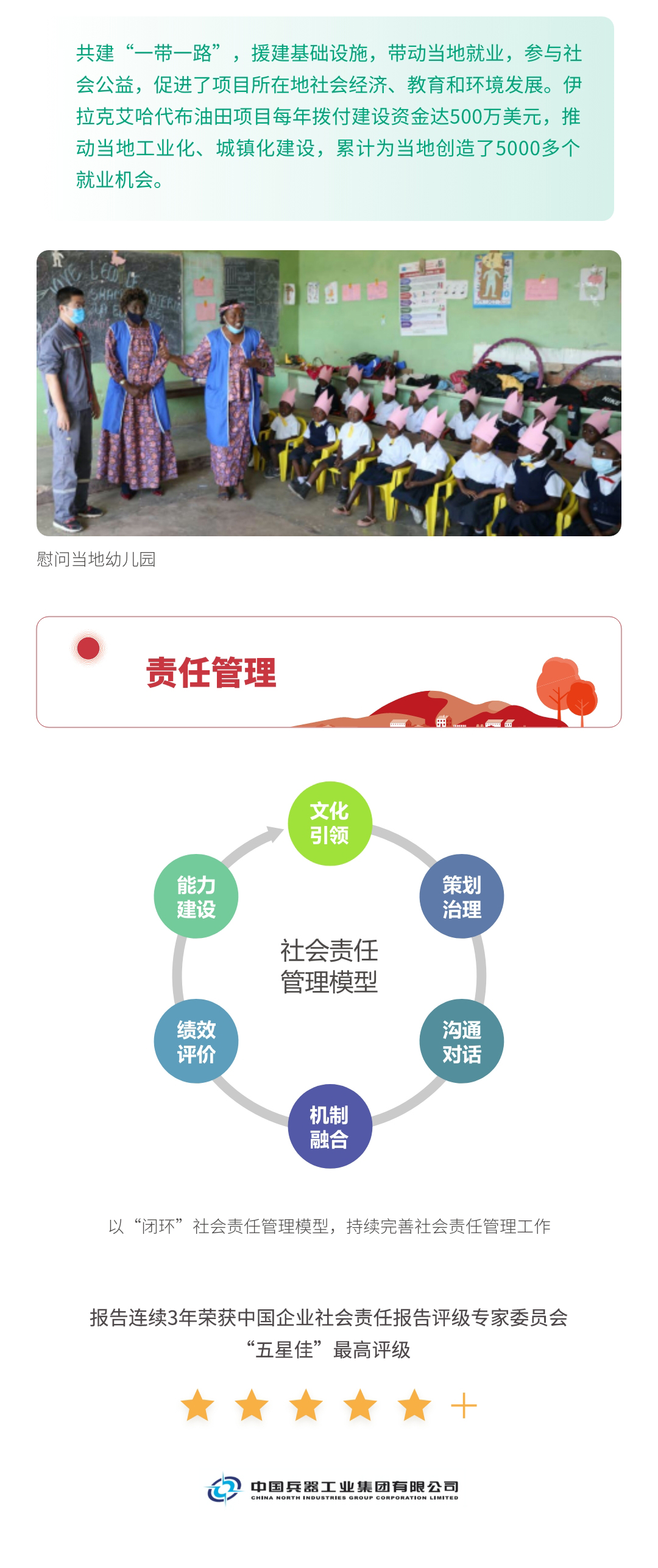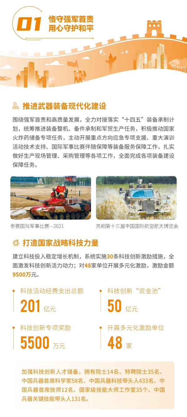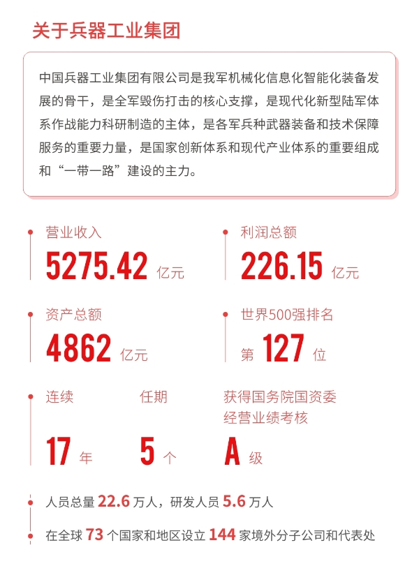 近日,兵器工業(yè)集團正式發(fā)布第十三份年度社會責(zé)任報告——《中國兵器工業(yè)集團有限公司2021年社會責(zé)任報告》,以“用心守護和平、用力爭創(chuàng)一流、用情溫暖社會”為主題,從恪守強軍首責(zé)、服務(wù)經(jīng)濟建設(shè)、共創(chuàng)美好生活三個維度,向社會全面披露2021年度履責(zé)實踐和履責(zé)業(yè)績。《報告》連續(xù)第三年獲得中國企業(yè)社會責(zé)任報告評級專家委員會“五星佳”評級,兵器工業(yè)集團成為軍工行業(yè)唯一連續(xù)11年獲得五星及五星佳最高評級的企業(yè)。 一圖解碼兵器工業(yè)的“責(zé)任力量” |