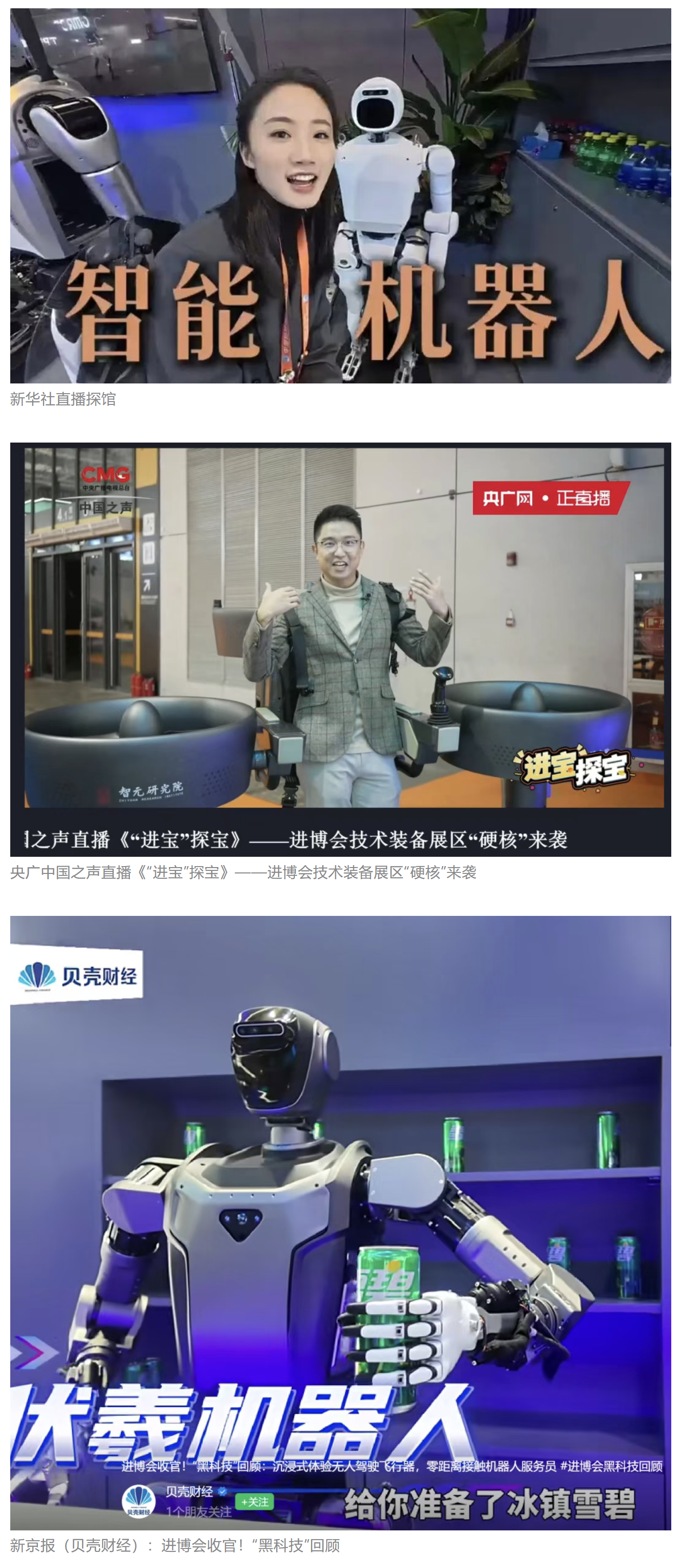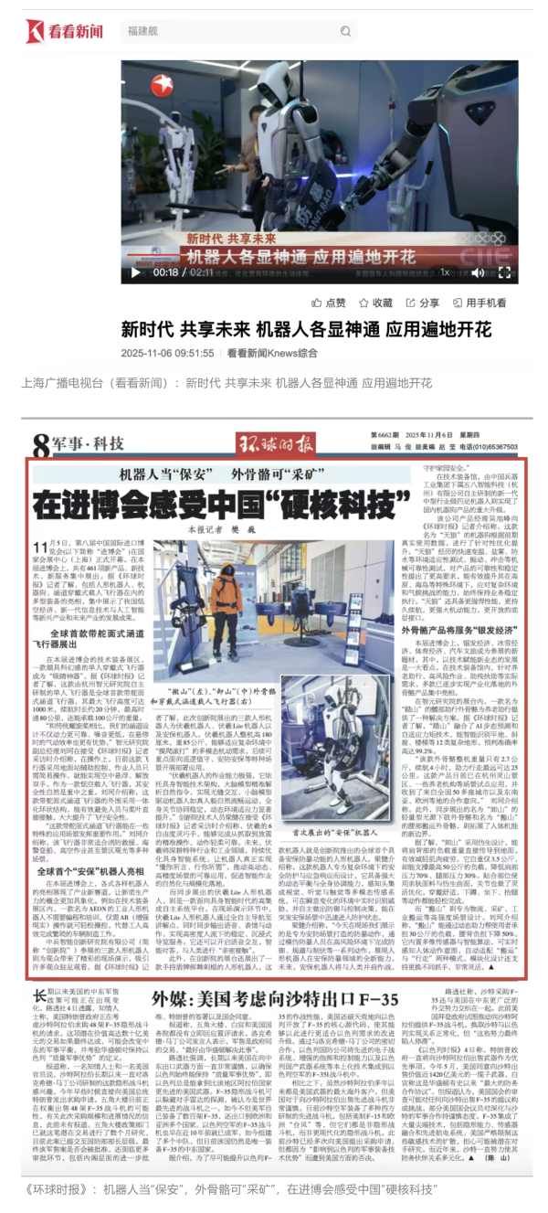 11月5日至10日,中國(guó)兵器工業(yè)集團(tuán)有限公司組團(tuán)參加第八屆中國(guó)國(guó)際進(jìn)口博覽會(huì)。集團(tuán)公司以“堅(jiān)持合作共贏,推進(jìn)高水平對(duì)外開(kāi)放,助力構(gòu)建新發(fā)展格局”為目標(biāo),圍繞“新征程,共創(chuàng)未來(lái)”主題組團(tuán)參展,集中展示了一系列新技術(shù)、新理念、新成果,取得豐碩成果,受到廣泛關(guān)注。 嘉賓云集 本屆進(jìn)博會(huì)上,蒙古國(guó)駐華大使、贊比亞礦業(yè)和礦產(chǎn)開(kāi)發(fā)部常任秘書(shū)、津巴布韋首席司長(zhǎng)等多國(guó)政要蒞臨集團(tuán)公司組展展區(qū),了解有關(guān)項(xiàng)目情況。 國(guó)家能源集團(tuán)、東風(fēng)汽車(chē)、哈電集團(tuán)、鞍鋼集團(tuán)、中鋁集團(tuán)、通用技術(shù)集團(tuán)、中國(guó)中車(chē)、中國(guó)長(zhǎng)安汽車(chē)、中國(guó)電建等央企領(lǐng)導(dǎo),工信部、國(guó)務(wù)院國(guó)資委、中國(guó)貿(mào)促會(huì)、陜西省、上海市、浙江省等國(guó)內(nèi)政府部門(mén)領(lǐng)導(dǎo)以及國(guó)內(nèi)外合作伙伴蒞臨集團(tuán)公司組展展區(qū)參觀指導(dǎo)。對(duì)集團(tuán)公司高質(zhì)量共建“一帶一路”,與各國(guó)合作伙伴共享發(fā)展機(jī)遇、實(shí)現(xiàn)互利共贏給予高度評(píng)價(jià)。 媒體關(guān)注 集團(tuán)公司集中簽約亮相央視綜合頻道《新聞聯(lián)播》、央視新聞?lì)l道《朝聞天下》《新聞30分》《共同關(guān)注》、央視財(cái)經(jīng)頻道《正點(diǎn)財(cái)經(jīng)》《經(jīng)濟(jì)信息聯(lián)播》。 《環(huán)球時(shí)報(bào)》、環(huán)球網(wǎng)、《新京報(bào)》、《中國(guó)旅游報(bào)》等對(duì)集團(tuán)公司人形機(jī)器人、四足機(jī)器人、涵道穿戴式載人飛行器、外骨骼等多型新域新質(zhì)產(chǎn)品,集中亮相進(jìn)行報(bào)道。新華社、央廣中國(guó)之聲、新京報(bào)(貝殼財(cái)經(jīng))、上海廣播電視臺(tái)等媒體直播探館,打卡兵器“硬核科技”。 人民日?qǐng)?bào)客戶(hù)端、新華社客戶(hù)端、人民網(wǎng)、中國(guó)網(wǎng)、中國(guó)日?qǐng)?bào)網(wǎng)、國(guó)務(wù)院國(guó)資委網(wǎng)站、國(guó)資小新微信公眾號(hào)、國(guó)資小新Facebook、學(xué)習(xí)強(qiáng)國(guó)中央企業(yè)學(xué)習(xí)平臺(tái)、經(jīng)濟(jì)觀察網(wǎng)、新京報(bào)客戶(hù)端等第一時(shí)間刊發(fā)集團(tuán)公司組展簽約、ESG建設(shè)等情況。新浪財(cái)經(jīng)、界面新聞等商業(yè)平臺(tái)閱讀量累計(jì)超500萬(wàn)次。 在微博、抖音等新媒體平臺(tái)上,集團(tuán)公司高科技產(chǎn)品演示、5D穹幕電影體驗(yàn)等短視頻持續(xù)引爆流量,累計(jì)播放量超800萬(wàn)次,點(diǎn)贊量破50萬(wàn)?!氨鞴I(yè)集團(tuán)進(jìn)博會(huì)簽約386億”相關(guān)話(huà)題登上微博熱搜榜,閱讀量破5000萬(wàn)次。 文字丨劉暢 |